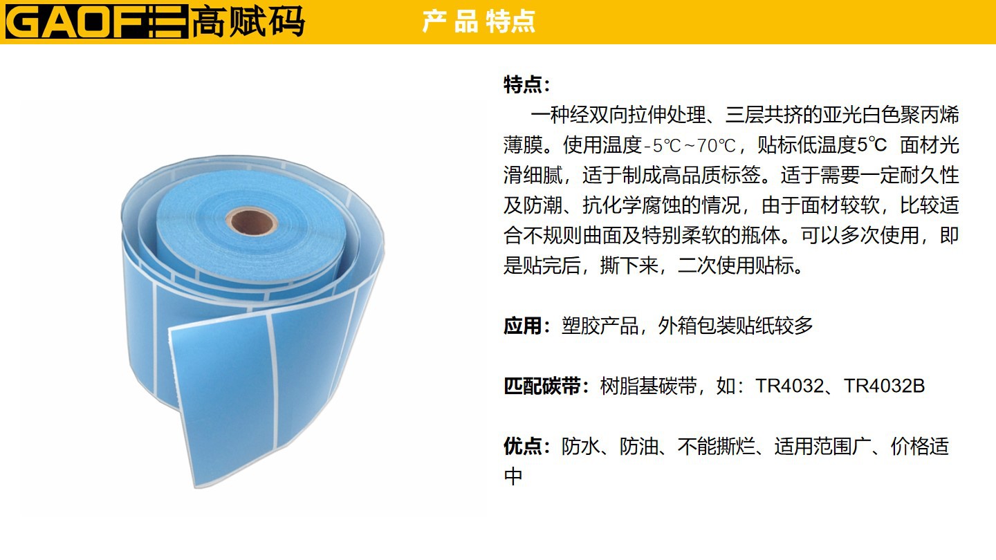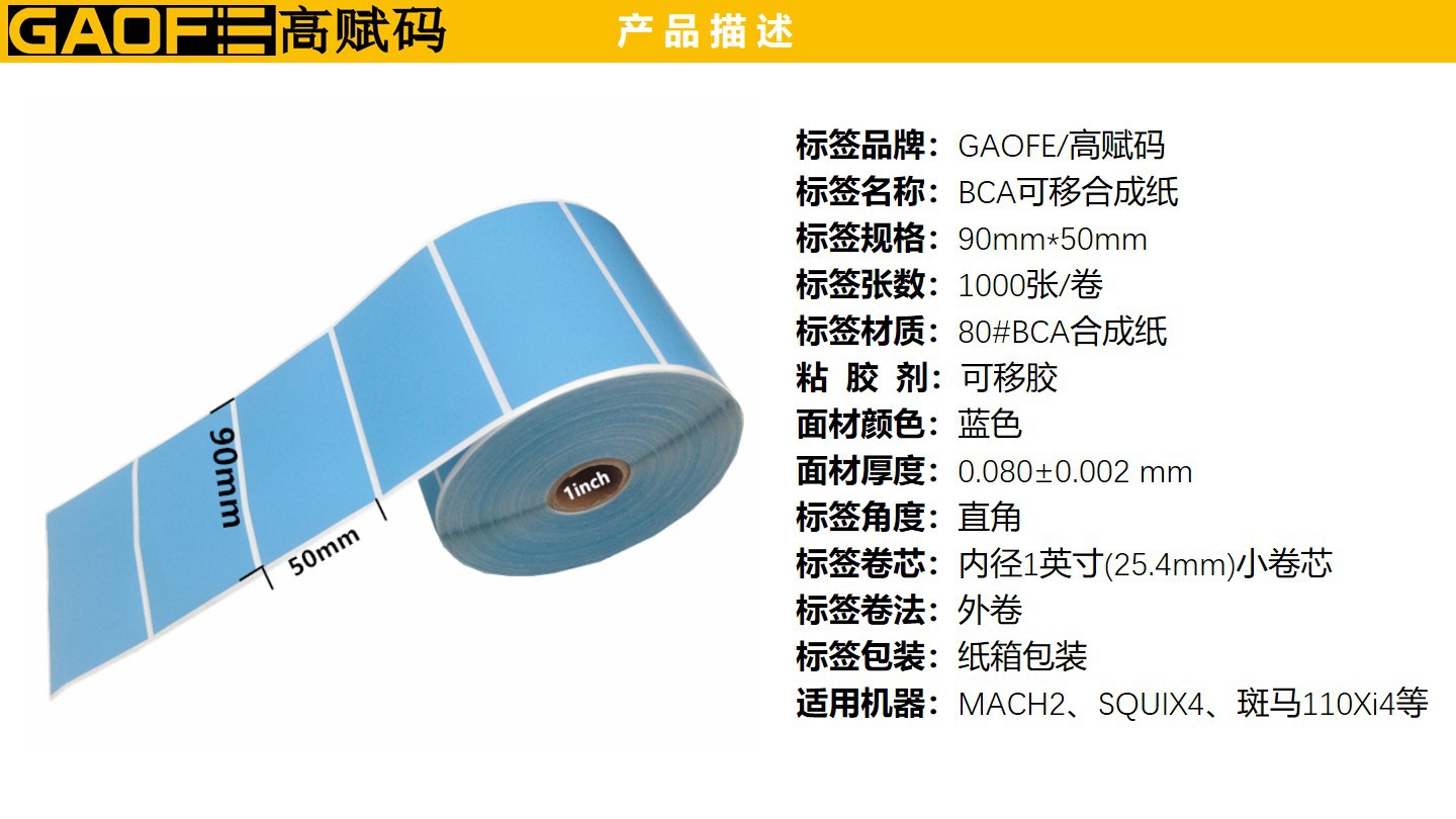 藍色合成紙標簽90mm*50mm可多次使用標簽PP合成紙 可移標簽-高賦碼