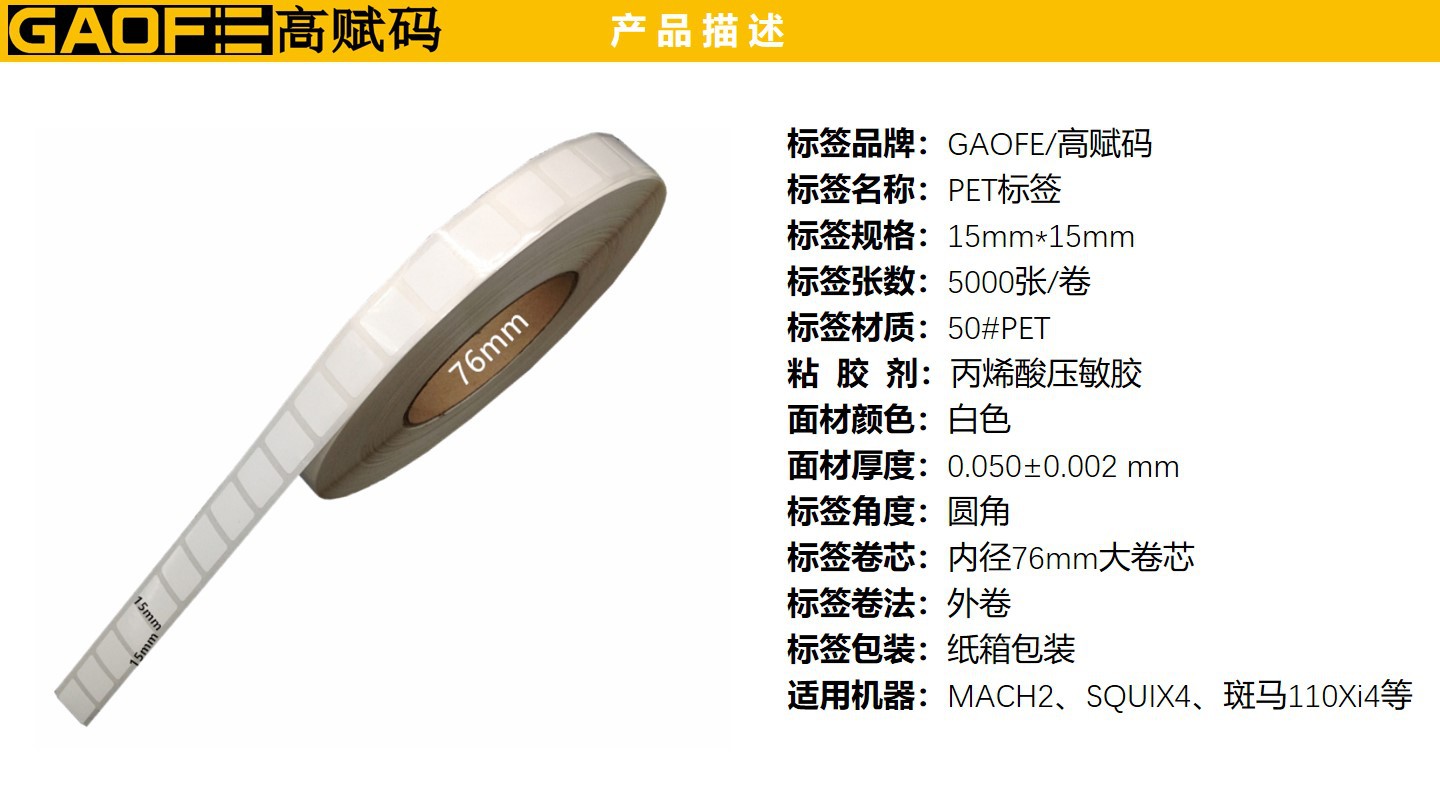 PET標簽15mm*15mm 撕不爛標簽 白色防水標簽 不干膠標簽-高賦碼
