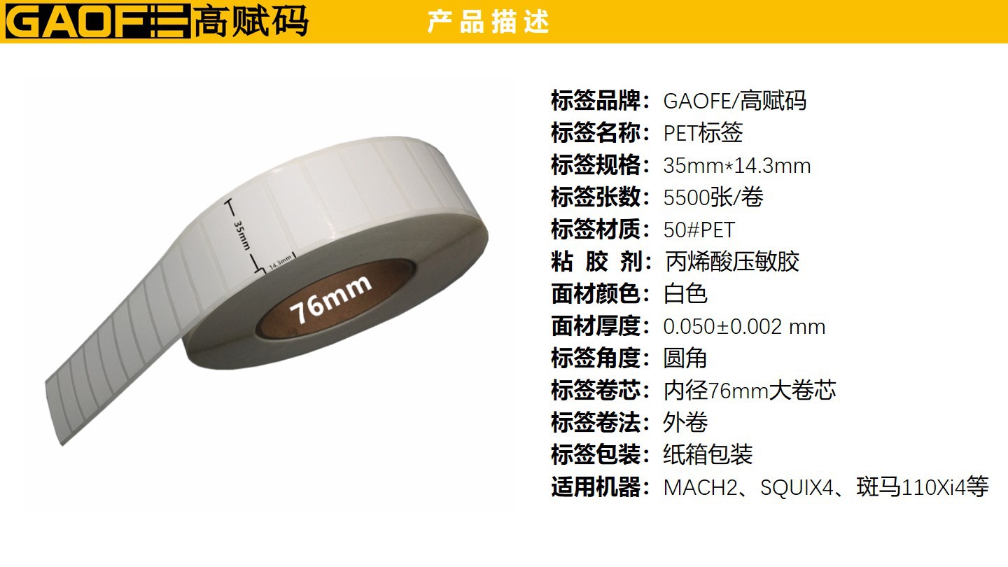 PET標簽 白色防水標簽 撕不爛標簽 35mm*14.3mm 不干膠標簽高賦碼