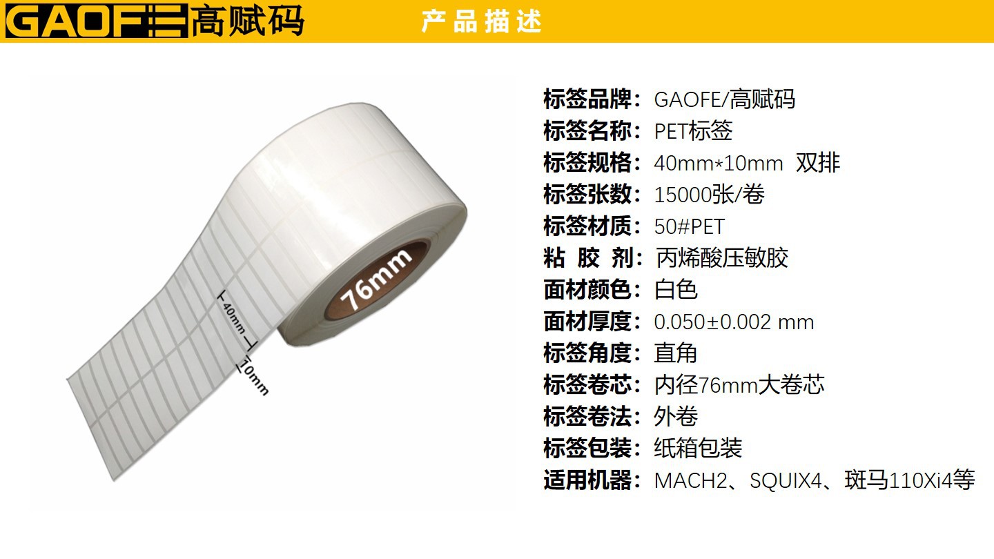 水防油標簽紙 40mm*10mm 條形碼標簽紙 PET不干膠標簽紙-高賦碼