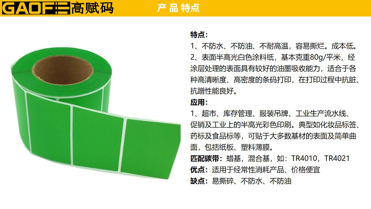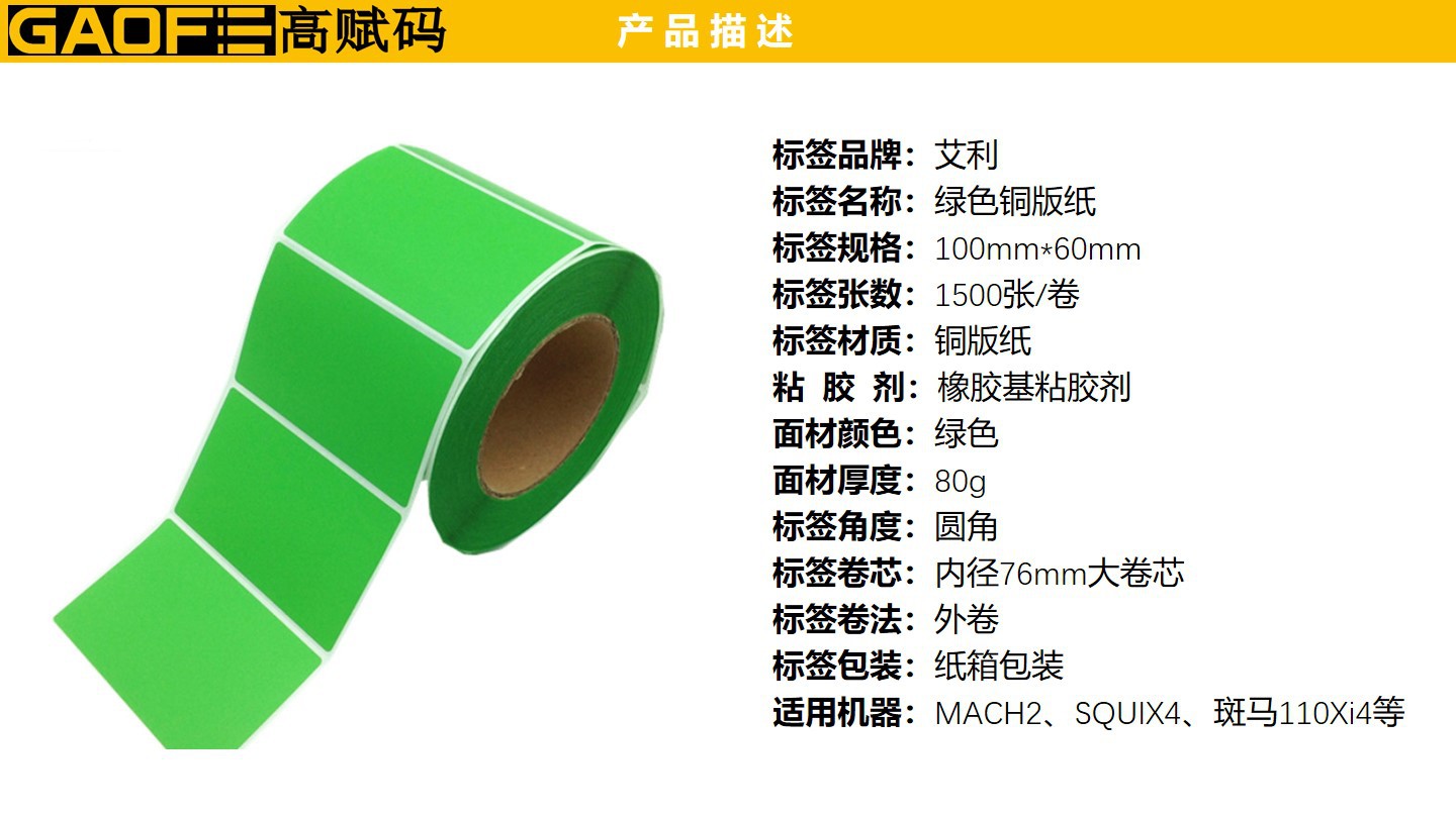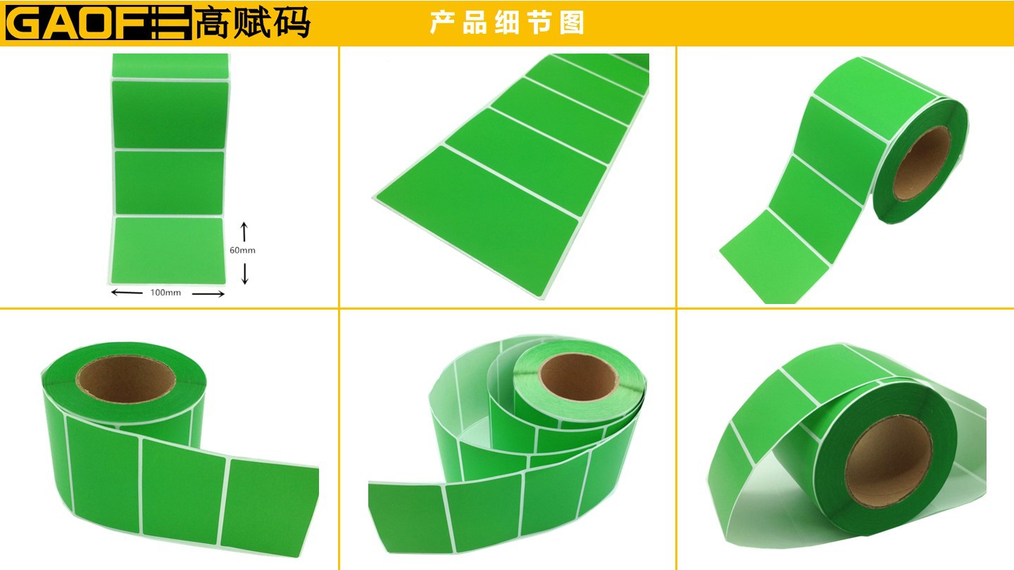 綠色不干膠標簽紙 100mm*60mm 強粘性標簽紙 彩色5209銅版-高賦碼