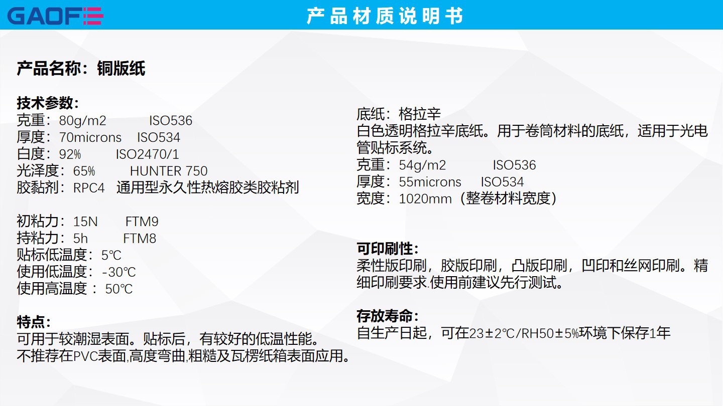 印刷及加工: 經(jīng)超級砑光處理的半高光表面,非常適合用于各種印刷工藝進行單色及彩色印刷。