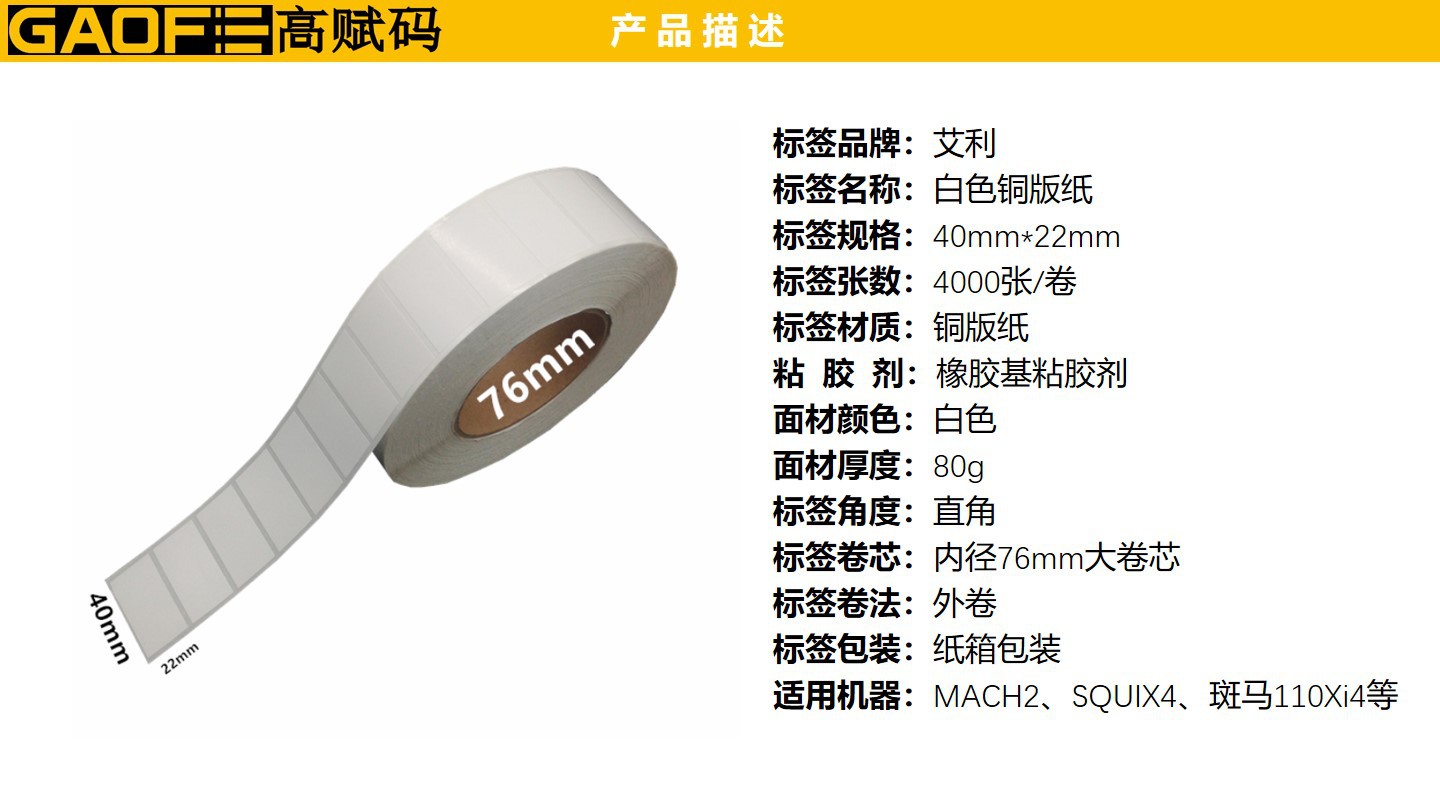 條碼標簽 強粘性標簽 5209銅版紙 40mm*22mm 出貨紙標簽-高賦碼