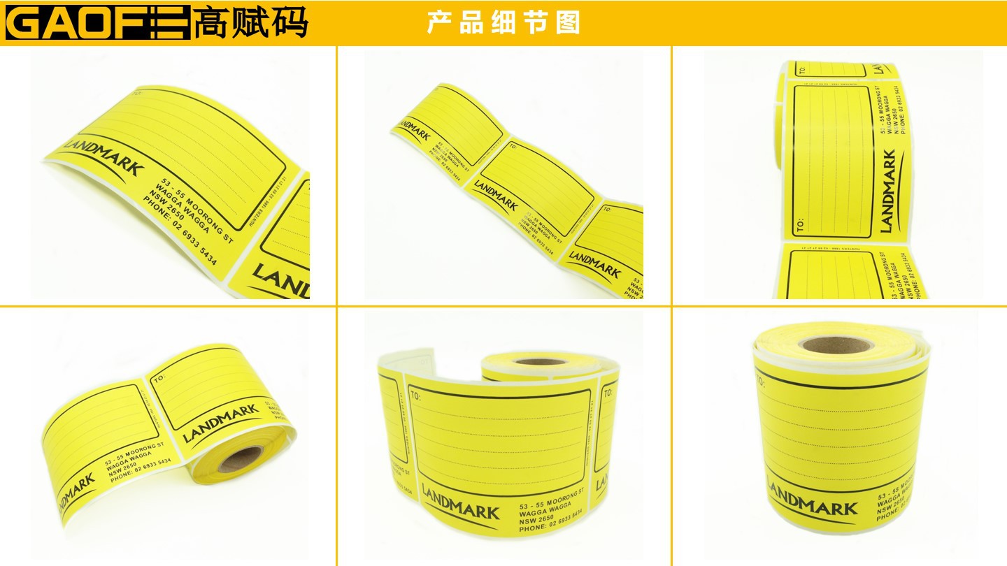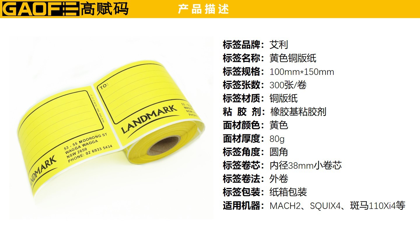 外箱紙標(biāo)簽 100mm*150mm 黃色印刷標(biāo)簽 強粘性 5209銅版紙-高賦碼