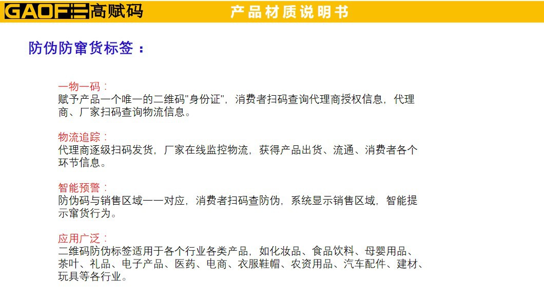 防偽防竄貨標(biāo)簽 50#白色大字VOID 彩色涂層高光亮白-高賦碼