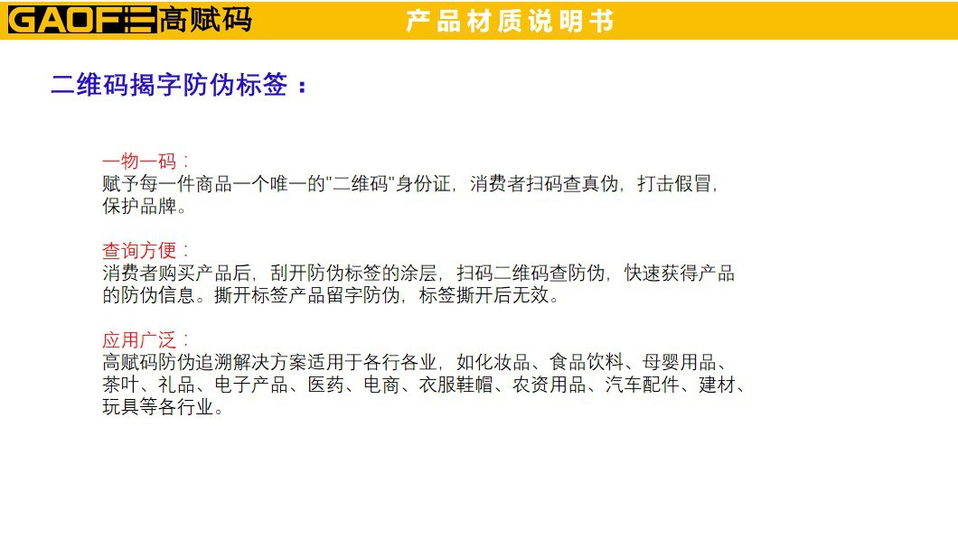二維碼揭字防偽標簽 50#白色大字VOID 彩色涂層高光亮白-高賦碼