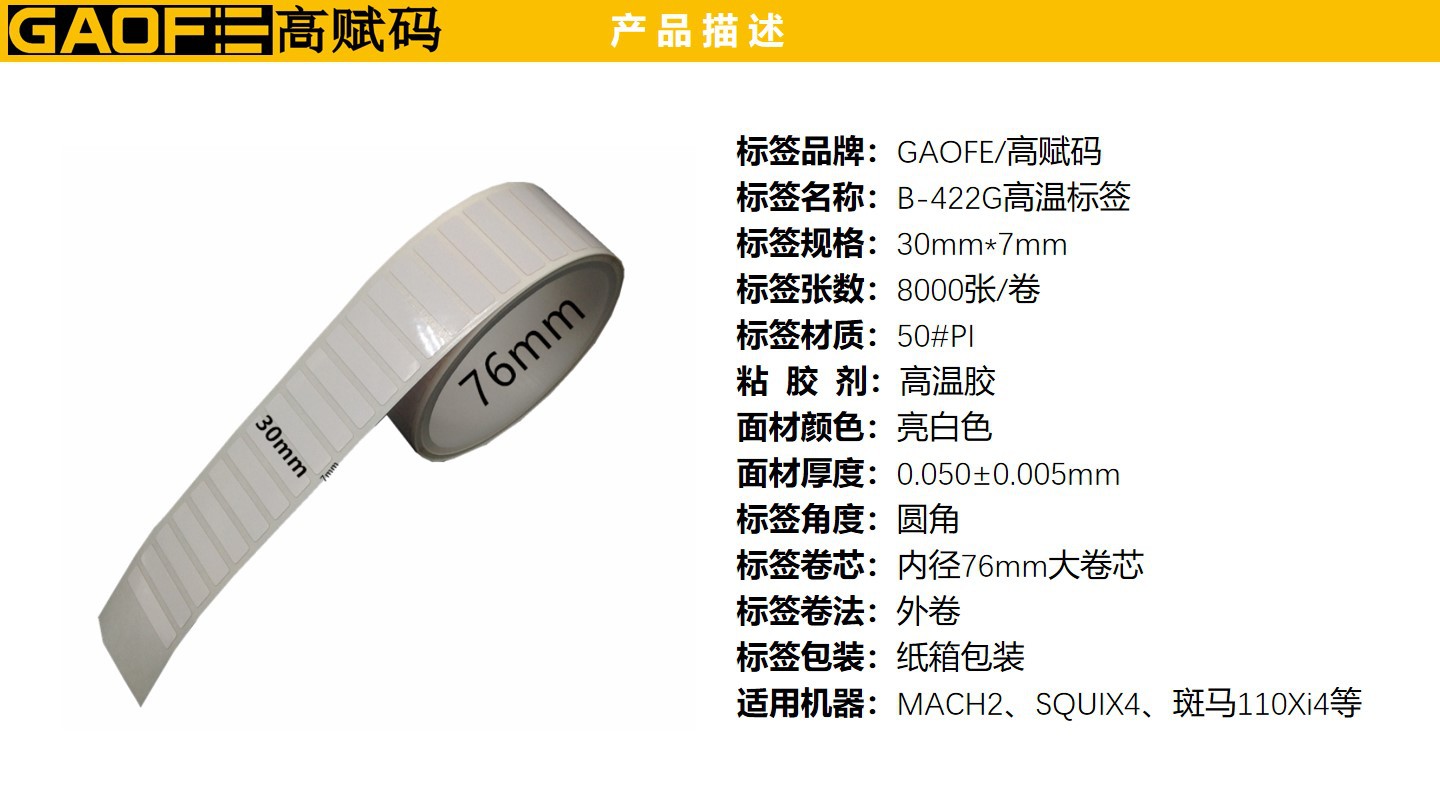 PI高溫標簽 B-422G 30mm*7mm PCB板專用高溫標簽 電路板紙-高賦碼