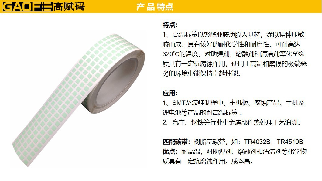 高溫標簽 B-434GY 黃色色高溫PI 12mm*8mm 電子行業(yè)-高賦碼
