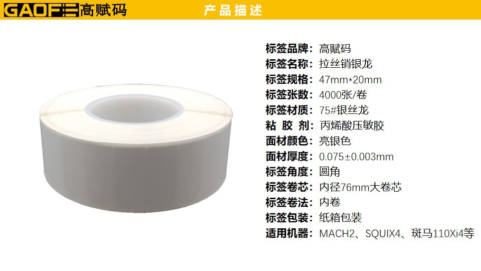 拉絲銷銀龍 激光打標機專用標簽 高賦碼品牌標簽 47X20MM 定制-高賦碼