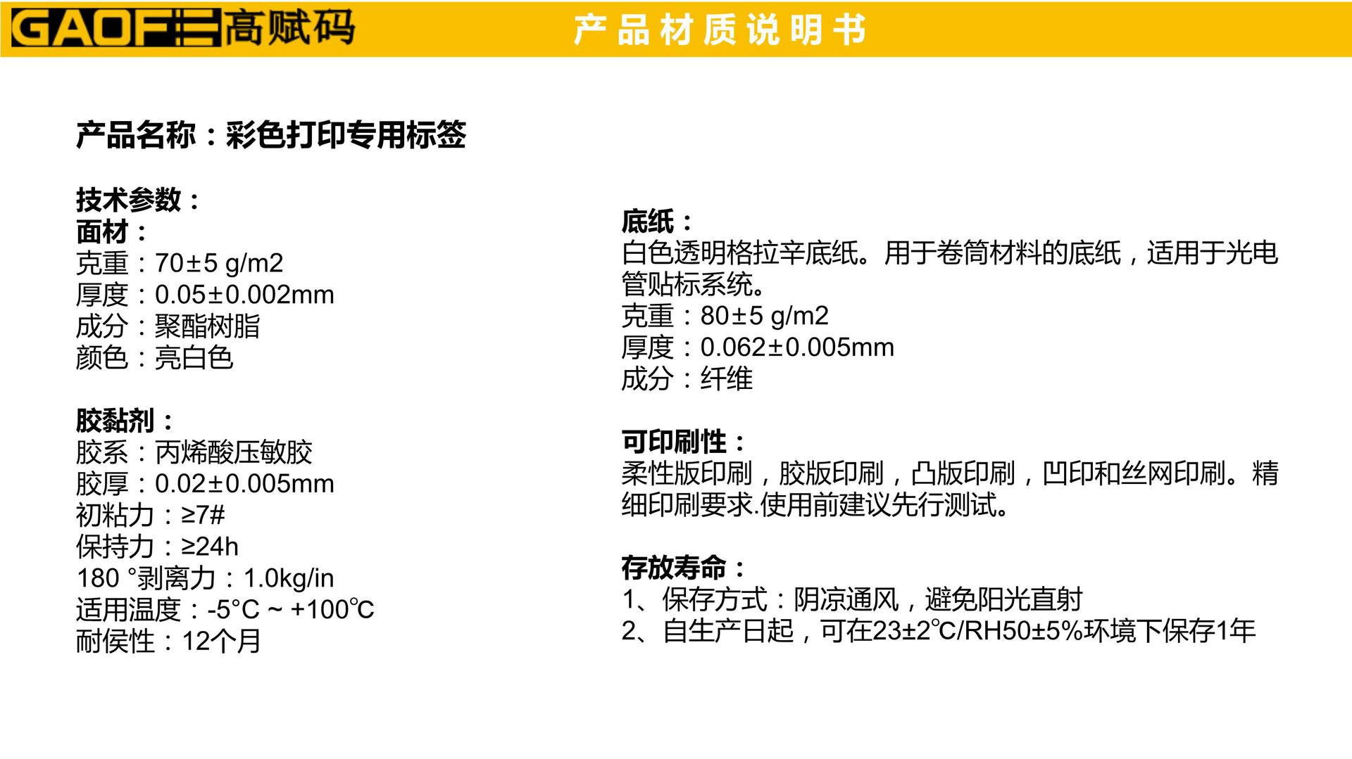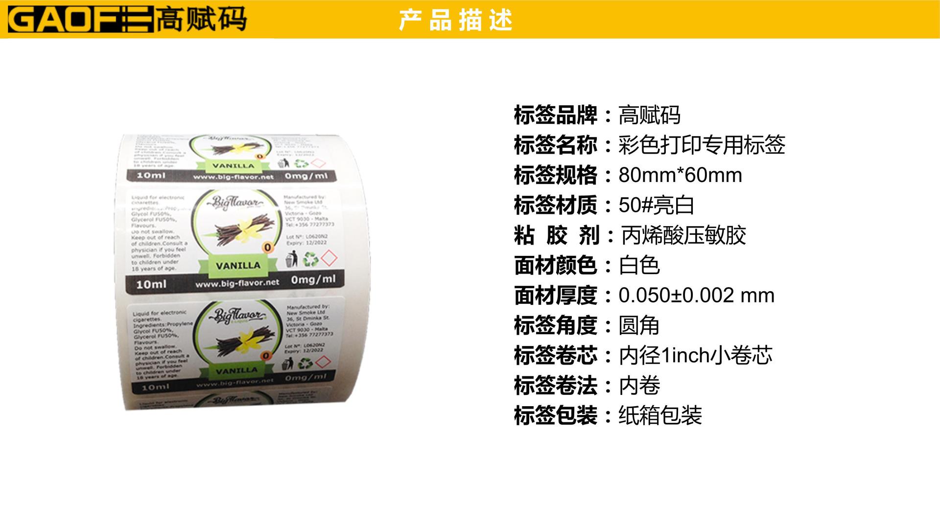 80mm*60mm 彩色打印機專用 定制打印 彩色涂層高光 高賦碼