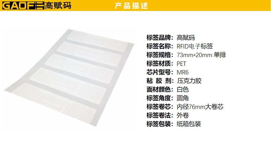 RFID電子標簽 MR6 乳白色PET 73MMx20MM 電子標簽 高賦碼