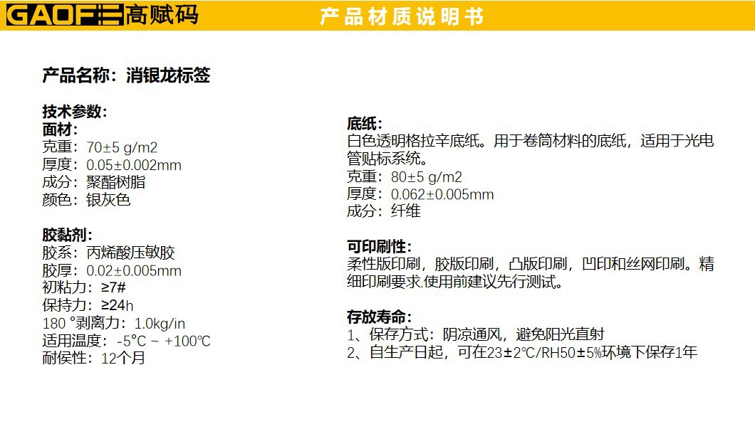 消銀龍標簽 耐高溫100度標簽 70mm*45mm 銀色標簽 啞銀龍貼-高賦碼