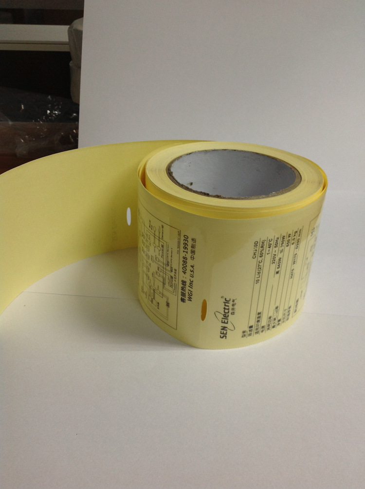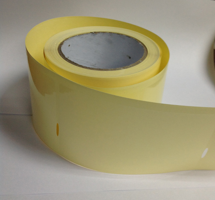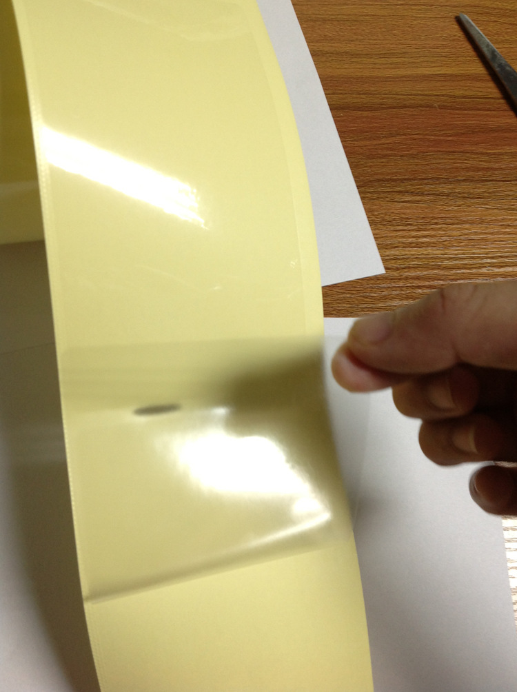 基材:25um(或50um)涂層處理聚酞亞胺薄膜,未經涂層處理的聚酞亞胺不能滿足性能要求、涂層處理能更加地滿足工藝上所需的打印條碼性以及對材料顏色與光澤度的要求。