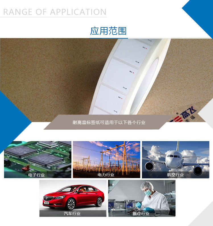 高溫標簽聚酰亞胺薄膜為基材,涂以特種壓敏膠而成,具有較好的耐化學性和耐磨性,耐溫范圍200℃~600℃,對助焊劑、熔融劑和清潔劑等化學物質具有抗腐蝕作用,使用于高溫和磨損的極端惡劣的環境中能保持原本性能。它是專為印刷電路板用字符或條形碼標簽而設計,因為它可以經受生產印刷電路板過程中所面臨的焊接劑、熔融劑等的侵蝕。目前厚度主要是25um、50um兩種。常用的顏色是黑色和白色 。高溫標簽廣泛地應用于眾多電子產品的SMT及波峰制程中、主機板、腐蝕產品、手機及鋰電池等產品的PCB板高溫標簽。