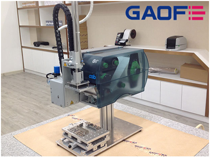 高賦碼在線自動打印貼標機在標簽使用上可適用不干膠標簽、不干膠膜、電子監管碼、條形碼等。適用于在各種物品的上平面貼標簽,如書本、文件夾、手機盒子、紙箱、電子產品、卡片、PE袋子等,配CAB打印機,實現在線打印,如:打固定條碼、價格標簽、二維碼、流水號變化條碼、產品型號等信息,即打即貼,可隨時依據要求在電腦修改打印信息。節省了人工打印再單獨貼標的繁瑣工序,節約成本??膳渲枚鄠€貼標頭和打印機,實現一個產品上貼多張標簽的功能。在使用上大過程為傳感器檢測到產品經過,傳回信號到貼標控制系統,信號經過PLC處理后,在適當時刻送出標簽貼附在產品設定位置上,產品流經覆標裝置,標簽被覆牢固,一張標簽的貼附動作完成。