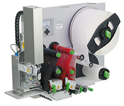 墊片在標(biāo)簽剝離板前就會(huì)定位。標(biāo)簽在打印同時(shí)就會(huì)由墊片所吸附。氣缸會(huì)將標(biāo)簽放置于產(chǎn)品上。短距旋轉(zhuǎn)氣缸會(huì)水平移動(dòng)到貼標(biāo)位置上并放置標(biāo)簽于產(chǎn)品上。氣缸行程長(zhǎng)度取決于標(biāo)簽剝離板至產(chǎn)品的最大距離。